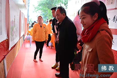 市民在观赏义卖字画(图片来源:凤凰佛教 摄影:南普陀在线)
