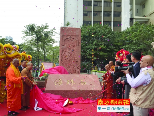 2016年1月14日上午10点多,远道而来的南亚某国僧王一行和大佛寺耀智大和尚及荟景湾的开发商景氏家族成员等为海珠石揭幕。