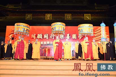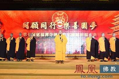 2015年12月31日晚20:00,“同愿同行乐善圆梦”昆山延福禅寺第七届撞钟跨年祈福大典,在江苏昆山千灯古镇延福禅寺隆重开启,来自全国各地的嘉宾和善信相聚延福禅寺,倾听佛乐梵音,传递莲花明灯,叩响延福金钟,祈愿接福迎春。