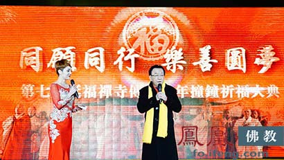 艺术家侯耀华先生致新年辞并号召大家助益慈善(图片来源:凤凰佛教)