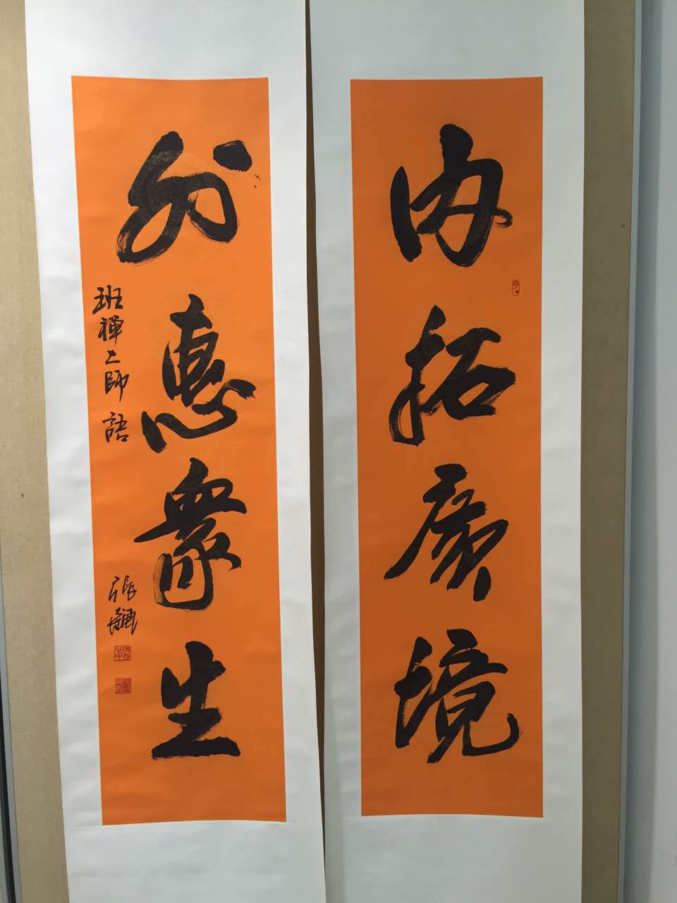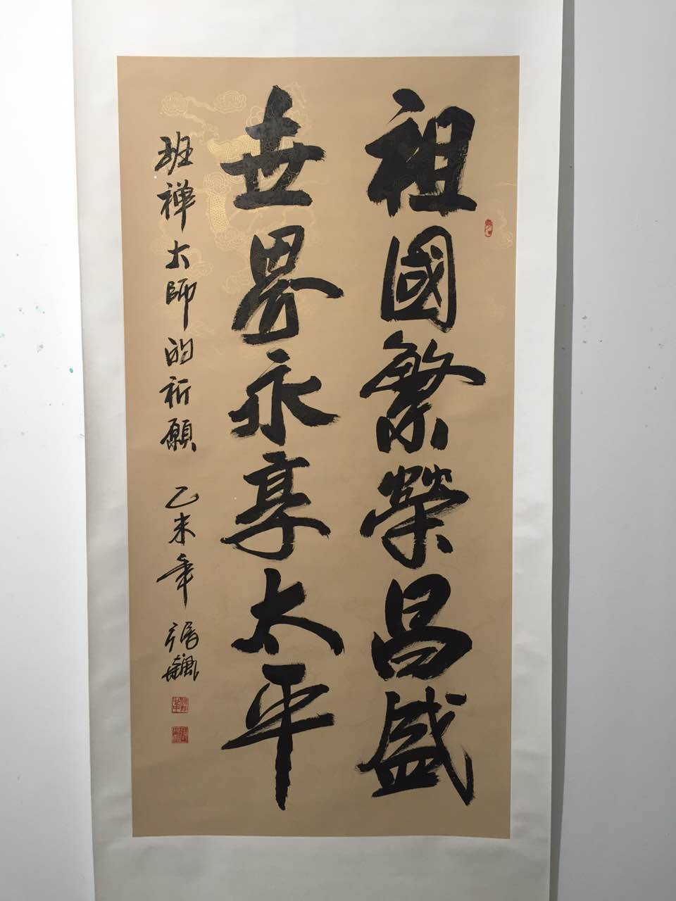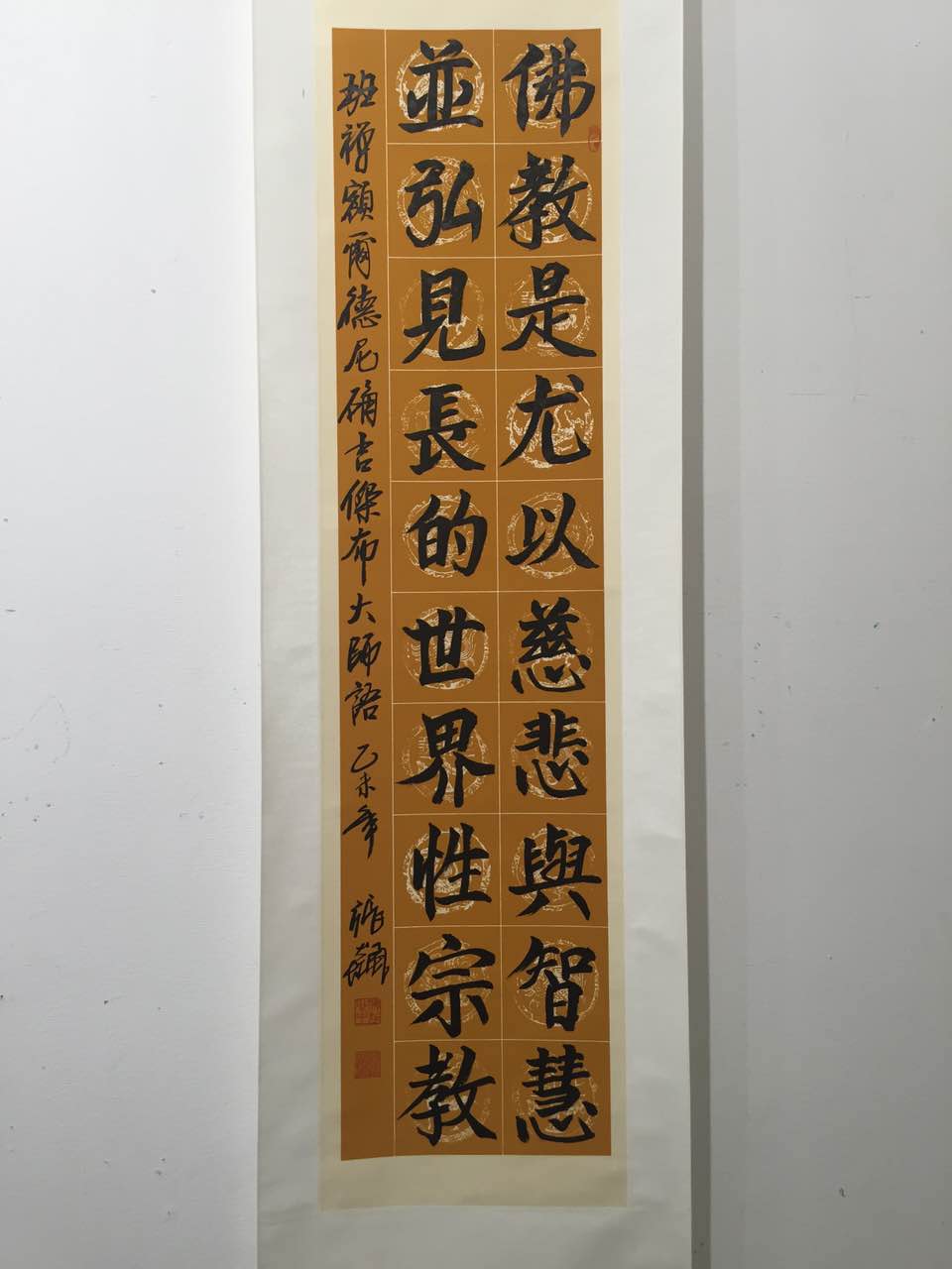 据了解,近10年中,张飙近距离接触了班禅,亲身感受了班禅对党和国家的热爱、对爱国爱教历史责任的担当。为了表达对班禅的敬意,他从班禅历年的讲话文稿中摘出了99条句子,写成书法作品,同时撰写了书稿,计划以书法创作和图书著作等方式,将班禅对佛教的思考、对世界的关怀呈现给社会,让更多的人于班禅爱国爱教、慈悲为怀的德行中受到感召,对维护祖国统一、实现西藏长治久安、促进民族团结发挥积极作用。