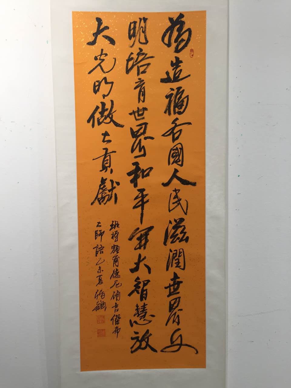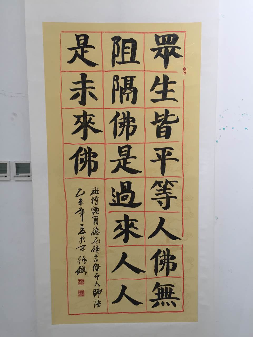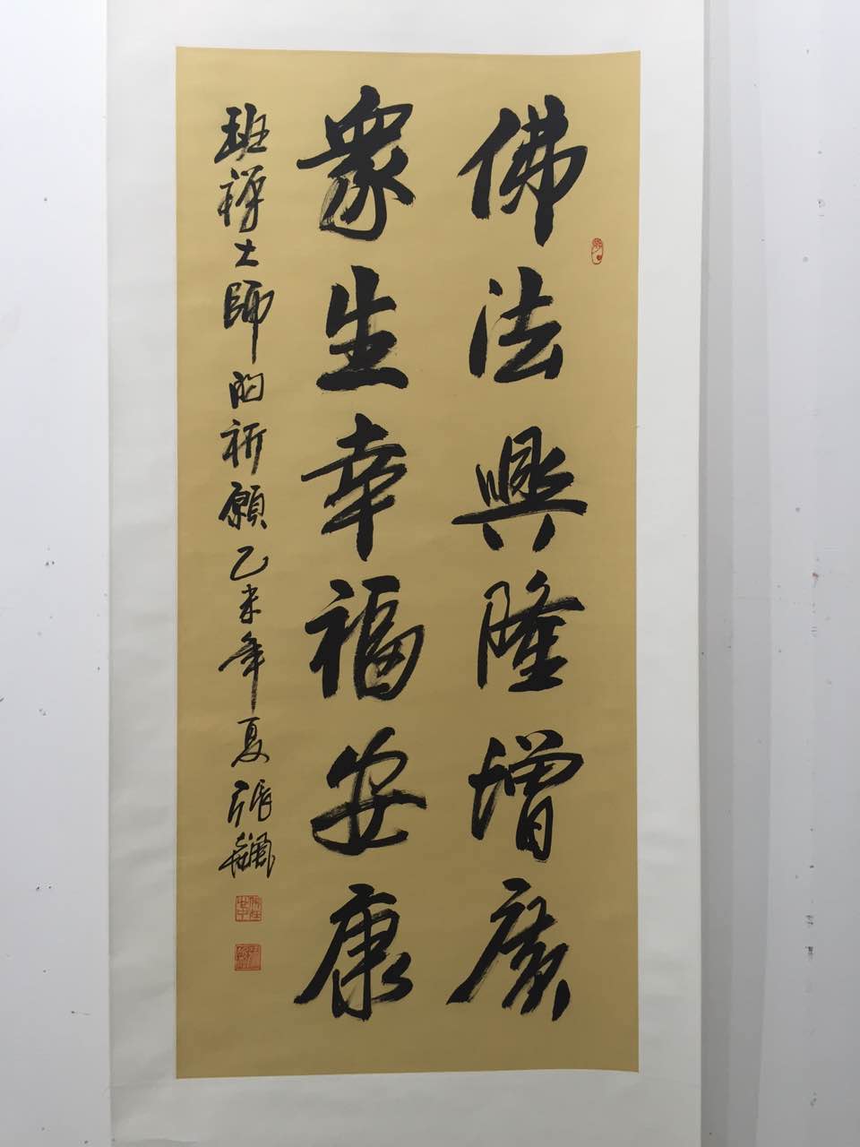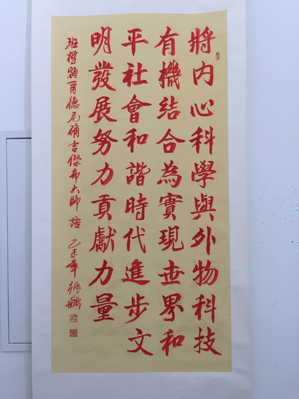 据了解,近10年中,张飙近距离接触了班禅,亲身感受了班禅对党和国家的热爱、对爱国爱教历史责任的担当。为了表达对班禅的敬意,他从班禅历年的讲话文稿中摘出了99条句子,写成书法作品,同时撰写了书稿,计划以书法创作和图书著作等方式,将班禅对佛教的思考、对世界的关怀呈现给社会,让更多的人于班禅爱国爱教、慈悲为怀的德行中受到感召,对维护祖国统一、实现西藏长治久安、促进民族团结发挥积极作用。
