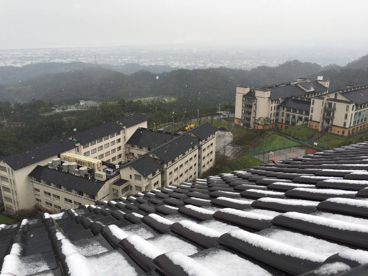 今年的“Boss级”大寒流,不仅让广州、深圳等地的南方朋友们开心赏雪,更让海峡对岸的台湾宜兰佛光大学出现了被誉为“百年难得”的景象——1月24日,冷气团笼罩整个台湾,带来2°C低温,细细雪花悄悄飘落在宜兰佛光大学光云馆、云居楼的屋顶上、树上,这是兰阳地区难得的景象。