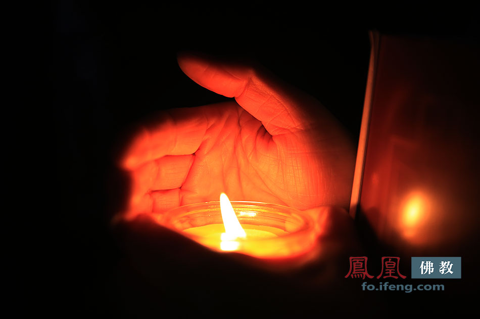 呵护着烛光的祈福者(图片来源:凤凰佛教 摄影:张玺)