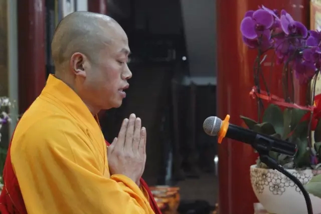 法会开始前,弘法利生部总干事照证法师为大家详细讲解了礼佛、拜佛等佛门礼仪。法师说“今天是个特殊的日子,大家在新年之际,从四面八方欢聚于文殊院,从此有了一个共同的生日‘佛化生日’。佛法犹如暗夜中的一盏明灯,佛法的学习从今天的皈依而始,祝福大家从此开启智慧福德之灯,拥有吉祥幸福人生。”