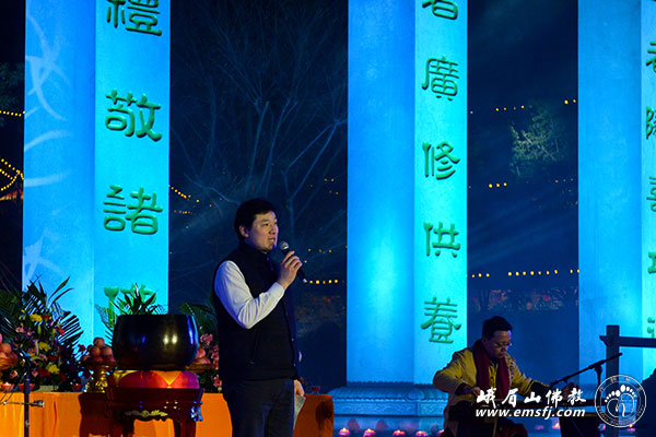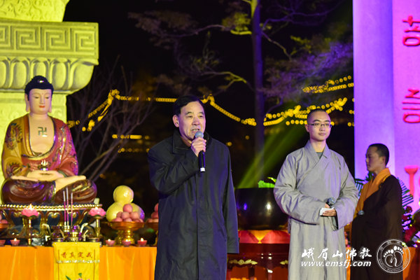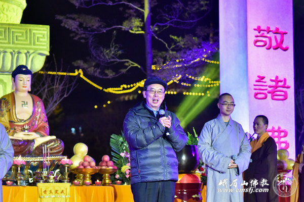 永寿大和尚致辞,感谢大家对峨眉山佛教多年的支持,并为大众送上新年祝福。王增建主任、朱清时院士分别致辞,祝愿大家在新的一年里吉祥如意。