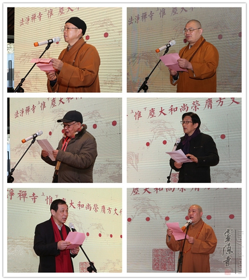 活动中,浙江省佛教协会副会长、杭州市佛教协会副会长月真大和尚,学者代表中国社会科学院荣誉学部委员、原佛教研究室主任杨曾文先生,杭州市副市长张建庭先生先后致辞,中天竺法净禅寺方丈惟尘大和尚致答谢词。