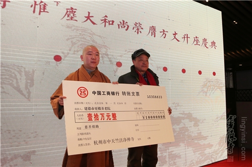 庆典上法净禅寺向建德市更楼养老院捐款10万元,用于养老院基础设施改善。