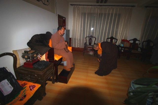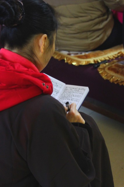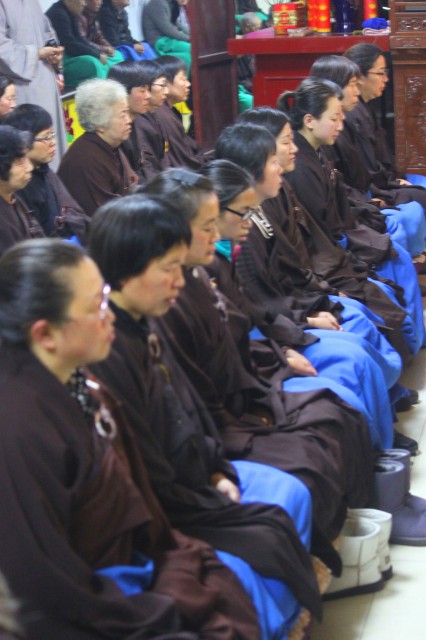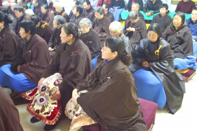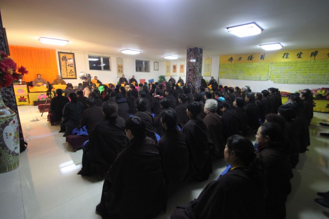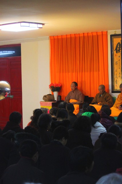 当天晚上,念佛堂内摩肩接踵、座无虚席,众善信在出家师父的带领下秩序井然的径行绕佛、念佛,等候着大和尚的到来。随后,地钟响起,信众们归位坐念,在都监隆广法师、首座广运法师及众善知识的迎请下,大和尚终于圆满出关,与众人等来到念佛堂,为早已等候在那里的信众们宣讲开示,人们聚精会神、侧耳谛听,听后法喜充满、如饮甘露、受益匪浅。