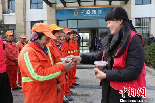 每递交一份腊八粥,正勤法师都双手合十,后背前倾。路政人员、养护工人双手接过腊八粥,掌心紧贴着粥盒,脸上洋溢着微笑。