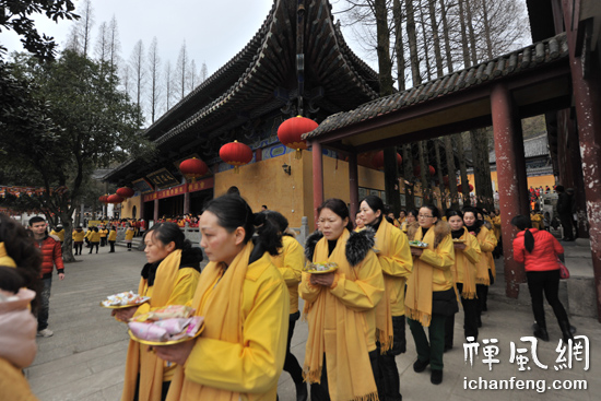 湖北黄梅五祖寺举行新年素斋宴供佛活动