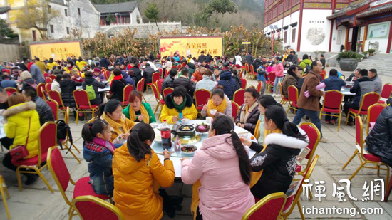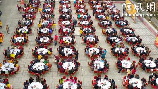 199桌罗汉斋流水席坐得满满当当,场面热闹恢弘
