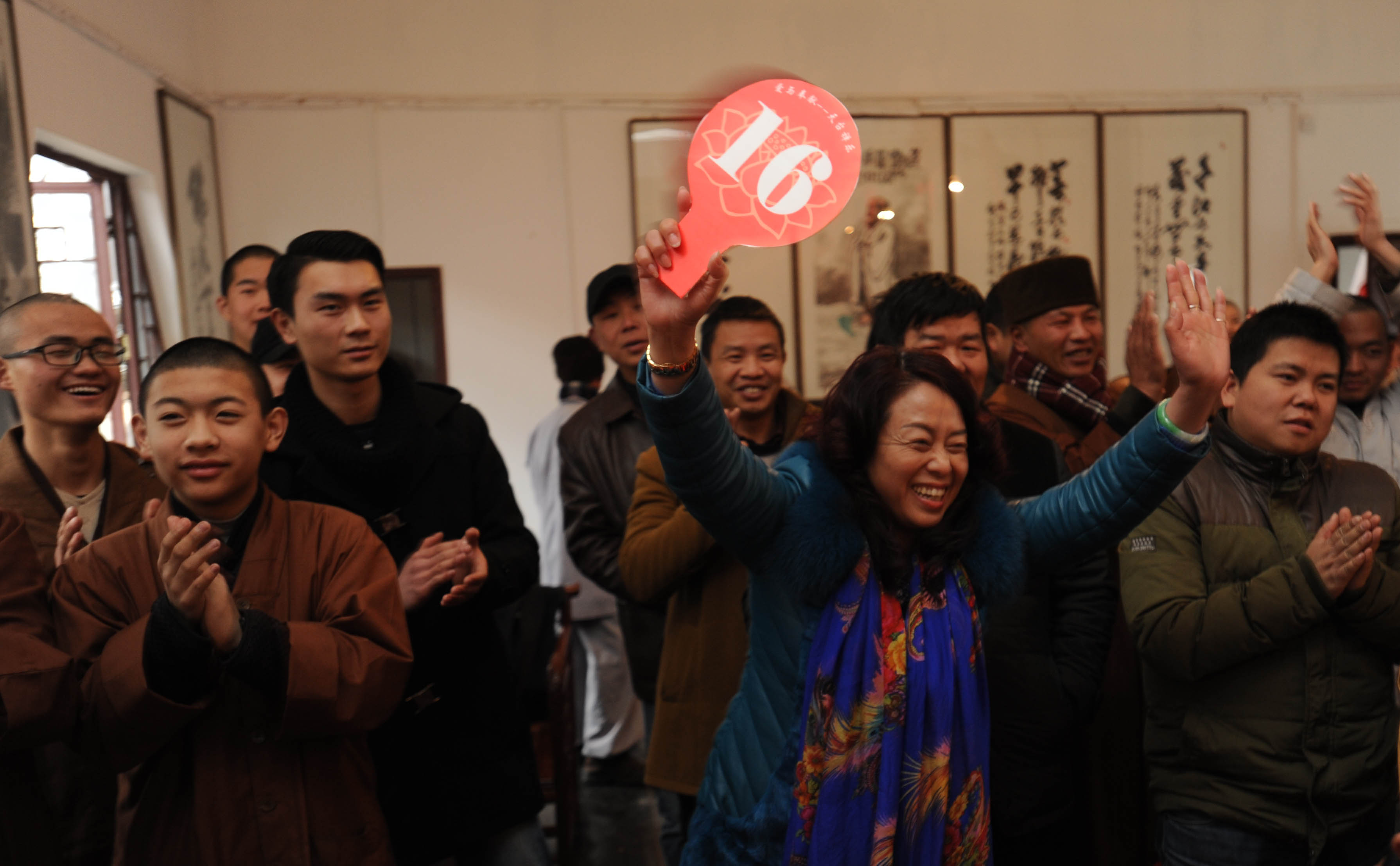 在天台寺举办的这场义拍活动甚至连拍卖槌都没有,拍卖师由一名电视台的节目主持人“客串”。现场自始至终一直处于活跃状态。每一次的举牌,都伴有掌声和欢呼声。好几次,拍品“落锤”,竞拍者飙泪,现场也跟着流泪。
