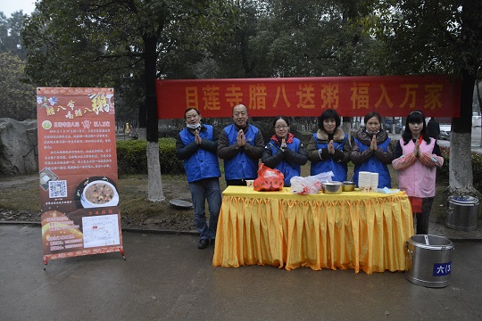 在一年一度的腊八节到来之际,为了让大众感受到佛陀的慈悲,大冶目莲寺举办感恩团年宴暨新春祈福大典,进行了腊八送粥福入万家活动。腊八粥是平安、吉祥的祝福!在寒冬腊月时节,目莲寺为有缘大众普供养腊八粥,希望借此活动向大众传达佛陀地祝福,唤起更多人加入到关爱他人的行列中来,并从中体会到中国传统文化的独特魅力,达到净化人心的目的。