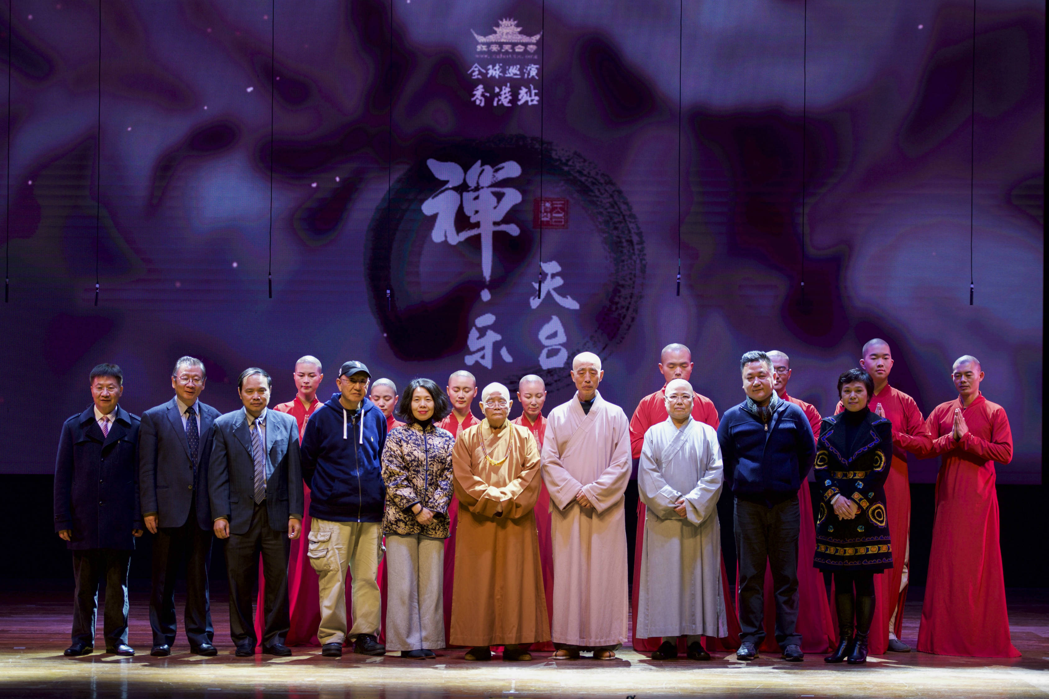 1月22日晚,由湖北红安县人民政府、天台寺禅文化发展有限公司主办的大型禅宗音乐舞蹈诗“天台禅乐”在香港举行首演。来自内地和香港的大和尚和法师、文化界知名人士以及香港市民一千余人共同欣赏了这台穿越古今中外的禅文化节目。