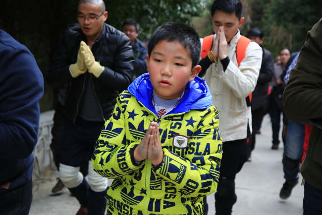 由于正值元旦小长假,净土苑游客倍增,很多人得以首次近距离观看到朝圣的情景,被三步一拜的盛况所震撼,发出由衷的赞叹。