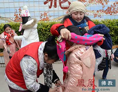华岩义工驱车5小时 为15位贫困生送棉衣