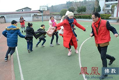 义工部义工们和同学们一起做游戏(图片来源:凤凰佛教)