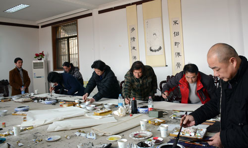 据了解,这次参加迎春笔会的有鼓楼区美术家协会主席李一辰以及画家李修祥、刁东升、张卜文、胡云海、王振宁、周保亚、陈丹晖等,鼓楼区美协副秘书长张伟出面组织。他们均为近年来徐州地区崭露头角的知名画家。他们刚走进江苏缘源书画院画室,便摩拳擦掌,挥毫泼墨,或花鸟,或人物,纷纷留下自己的得意作品。据组织者介绍,本次笔会的部分作品,将参加徐州佛教协会举办的拍卖活动,所得资金一律用于社会慈善事业。