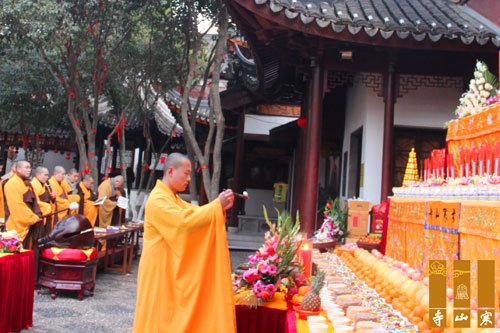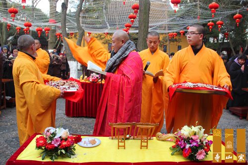 2016年2月16日(农历正月初九),帝释天圣诞日。为感恩三宝功德,慈光摄照,感恩诸天护持,道场安和,苏州寒山寺在寒拾殿前举行斋天祈福法会。