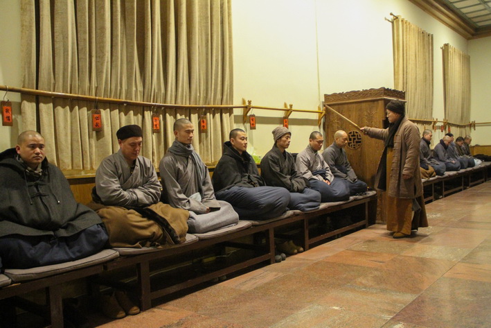 时光如梭,柏林禅寺历时三十五天的冬季禅七法会转瞬即过。禅堂外天空飘起雪花,禅堂内大众依依不舍。2016年1月30日上午九时许,明海法师解七法语声起: