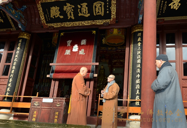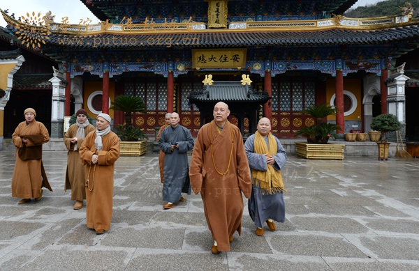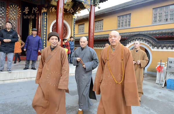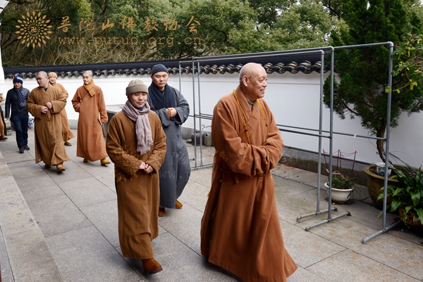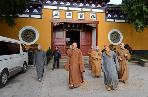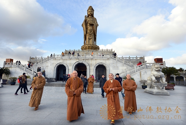 2016年1月29至30日,在新春来临之际,普陀山佛协会长、普济禅寺方丈道慈大和尚率副会长兼秘书长门肃法师,副会长定明法师等一行,先后前往本山慧济禅寺、宝陀讲寺、法雨禅寺、大乘禅院、南海观音、福泉禅林、梵音洞、善财洞、圆通禅林等寺院进行新春慰问与座谈,了解各寺院的情况及年前各项工作的准备,对大家一年来的辛勤工作表示感谢,对正在施工工地进行视察并作现场指导,同时嘱咐各寺院监院加强消防安全意识、做好防寒防冻措施,过一个平安吉祥的春节。