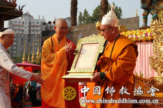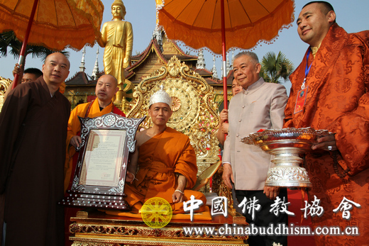 云南省佛教协会会长刀述仁居士等分别为5位帕祜巴颁发证书