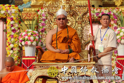 学诚法师代表中国佛教协会向祜巴龙庄勐晋升为帕松列龙庄勐,向西滴看堂、玛哈香、都香、都炳、都罕听晋升为帕祜巴表示热烈的祝贺。他说,云南省是全国唯一一个三大语系佛教共存、共发展的地区,汉语系、藏语系和巴利语系佛教相互尊重,和睦相处,共同发展,是云南民族团结的典范。就南传上部座佛教的健康发展,学诚法师提出了三点希望:一是加强人才建设,针对僧人数量减少、空寺现象增多、佛寺教育萎缩、高素质僧才匮乏等现象,积极制定南传佛教人才培养方案,推动建设中国巴利语系佛学院,继续选送优秀学僧到东南亚、南亚佛教大学留学深造,以及采取在云南举办讲经交流会等多层次、多渠道的办法,从整体上提高南传佛教教职人员的综合素质;二是组织力量开展南传上座部佛教典籍的编译整理工作,将其系统地转化为民众可理解和掌握的文字,并在南传佛教地区推广使用;三是推进南传佛教各项事业的健康发展,充分发挥南传佛教在保持当地文化传统、促进社会和谐、增进民族团结、维护边疆稳定以及促进与东南亚、南亚佛教国家友好交流等方面的重要作用。
