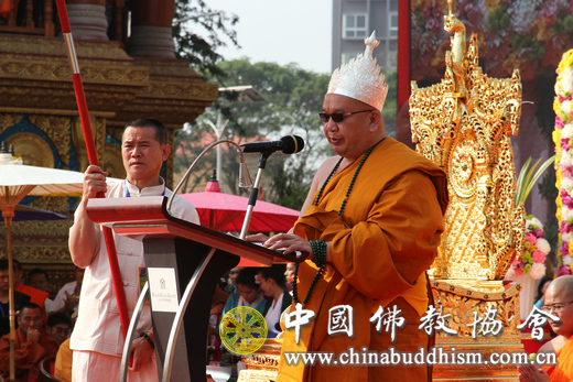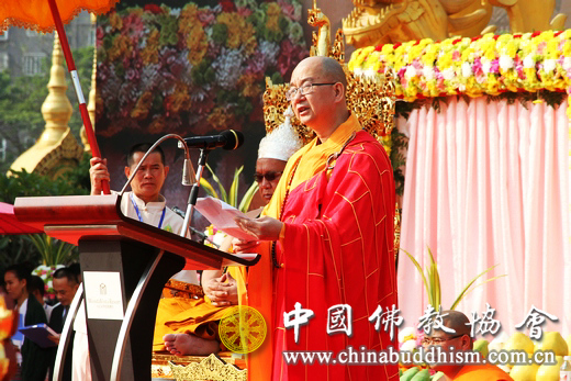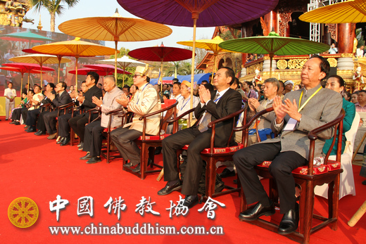 在全国人民正沉浸在新春佳节欢乐气氛的吉祥日子里,我们相聚在美丽的西双版纳举行帕祜巴和帕松列升座庆典法会,真是因缘殊胜、法喜充满。在这个庄严的时刻,我谨代表中国佛教协会向祜巴龙庄勐晋升为帕松列龙庄勐,向西滴看堂、玛哈香、都香、都炳、都罕听晋升为帕祜巴表示热烈的祝贺!向前来参加庆典法会的海内外各位嘉宾表示新春的祝福和诚挚的问候!