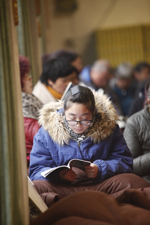 法会开始,传喜法师说,新年将至,按照中国人的习惯,过了小年,就已进入春节的状态了。中国人对春节有着深厚的情感,大家将这种情感寄托在慧日寺里,来慧日寺过年。实际上,慧日寺是一个道场,它告诉了我们时间是虚幻的,空间是虚幻的,乃至慧日寺这个平台也是无常的。在这里,我们通过这个平台,静下心来,自己不打扰自己,好好地念念经,能跟佛在一起。佛是什么?佛除了经典上的文字的含义,佛还有超越这些的、不生不灭的,那才是真实的佛。