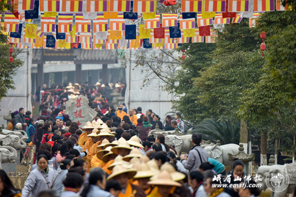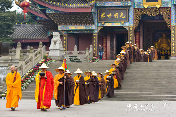 为弘扬人间佛教,再现佛陀住世时比丘僧团生活的真实场景,让在家信众有机会接近三宝、感受佛教僧团的庄严清净,峨眉山佛教协会于2016年2月21日(猴年元宵节夕)在峨眉山大佛禅院盛大举行“千僧托钵”活动,峨眉山本山及外山法师托钵行脚,来自省内外千余名善信居士、游人共赴盛会、结缘三宝。