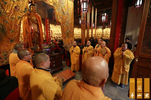 寒山寺常住法师为老人举办祈福法会,诵《药师灌顶真言》,祝福天下老人,福寿延年,幸福安康,离苦得乐。
