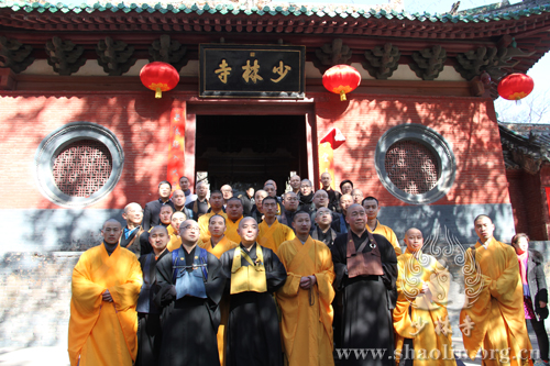 日本曹洞宗参访团一行于少林寺僧众在山门前合影