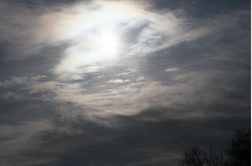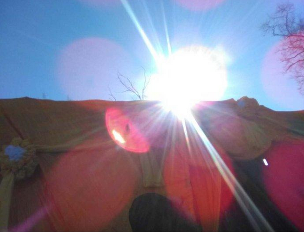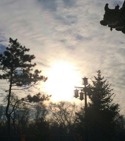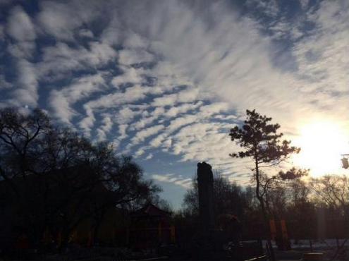 清晨,天空出现了不可思议的瑞相,太阳散发出一层层的光晕,太阳周围的云彩,幻化出各种各样的形象,有的像莲花,有的像天梯,栩栩如生,美不胜收。