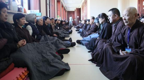 拜愿开始了,一个洪亮的声音引导着:阿—弥—陀—佛!拜!大家听从号令,整齐划一,匍匐于地,至心顶礼!一拜,二拜,三拜,跪下站起之间,心不觉宁静,清凉在左右展开,老法师在加持着我,我能感觉到,念及于此,心里不觉一热,眼角湿润了,敬爱的老法师……