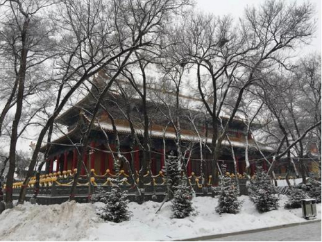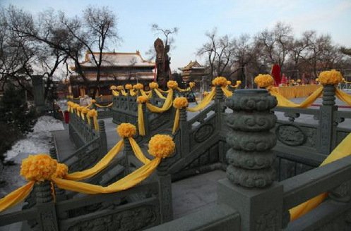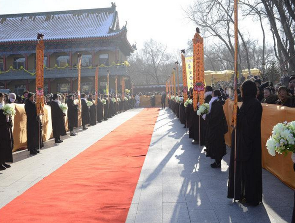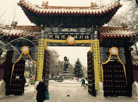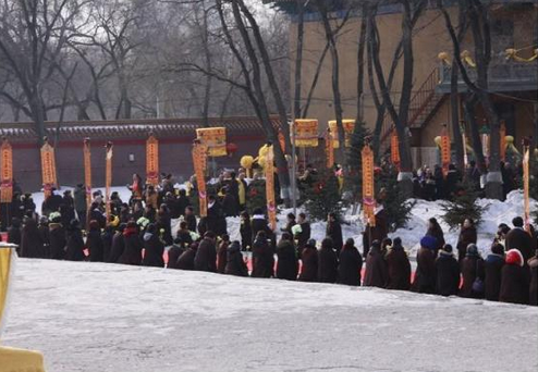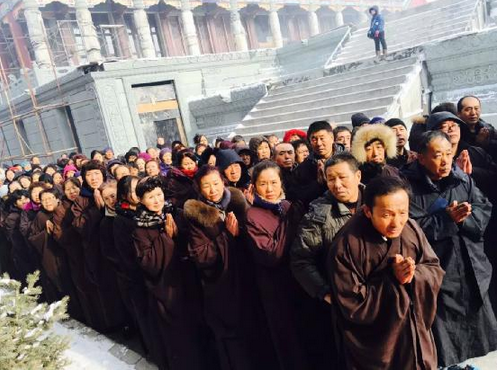 是日瑞雪纷飞,玉树琼花,果城寺的庙宇楼台在皑皑白雪的掩映下,更显庄严肃穆。近千名信众,不畏严寒,本着对老法师的无比崇敬和缅怀,陆续来到追思堂瞻仰老法师法体并参加助念。
