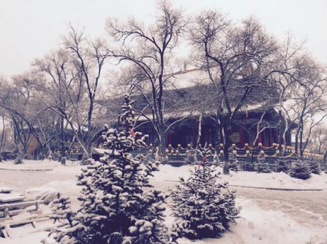一夜的念佛,在无量的法喜中,不觉迎来第四日的凌晨。走出追思堂,惊奇地看到漫天雪花,纷纷扬扬,落地无声。