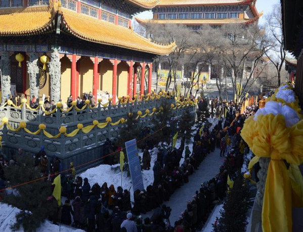 2016年2月18日,上果下成老法师圆满示寂的第3天。大庆果城寺隆重举行了上果下成老法师法体移灵仪式,上果下成老法师的法体于上午8:30分在肃穆和庄严的气氛中移至三圣殿。