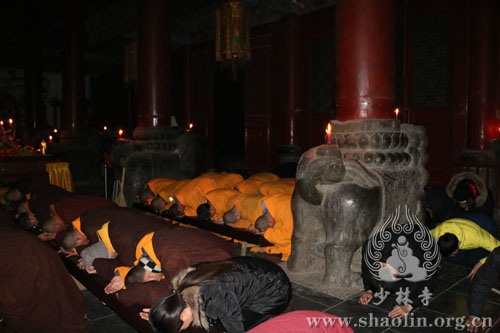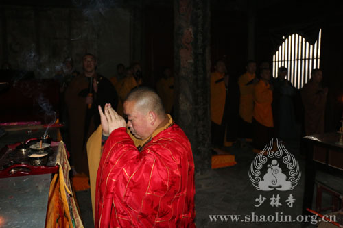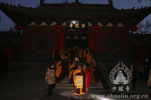2016年2月9日,农历大年初二,按照千余年来传承的少林宗风,早殿结束后,释永信方丈带领少林僧众及十方善信,从少林寺常住院出发,到少林寺初祖庵祭祖。祭祖法会在庄严的梵呗声中,如法如律。