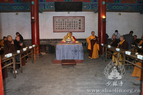 祭祖仪式后,永信方丈与僧众一起过堂用早斋