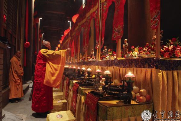 凌晨四时许,浙江省佛教协会会长、本山方丈怡藏大和尚拈香主法,遍洒甘露,祈福国泰民安,风调雨顺。四众居士信众严持香花恭请圣驾,虔诚祷告。随后诸法师念佛持咒设坛,梵音缭绕,响彻天地。法会现场庄严清净,如法如律,法喜充满。