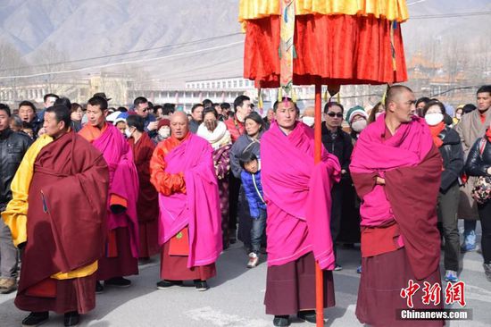 “世界藏学府”甘肃拉卜楞寺举行晒佛节