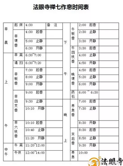 二、禅七时间:全年不间断举行,随到随参加,随时退出,每天九支香,每七天放参一天。