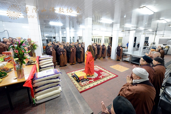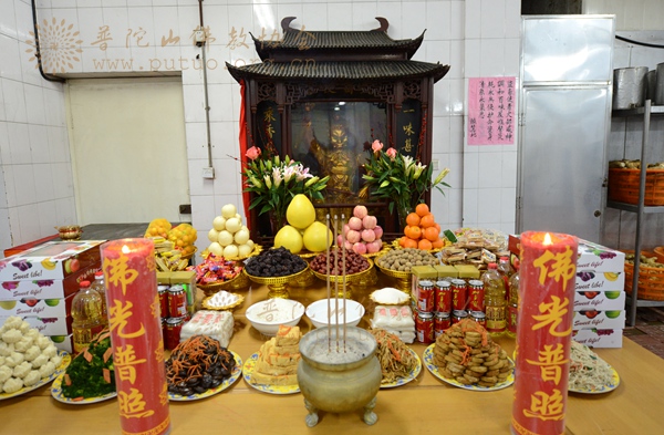 是日18时,遵循佛教寺院纪念监斋菩萨圣诞的传统,普陀山佛教协会会长、普济禅寺方丈道慈大和尚率佛协本部与普济禅寺全体法师于大厨房举行“监斋菩萨”上供法会,并亲自为法会拈香主法。祈祷风调雨顺、国泰民安;道场兴隆、海众安和。法会现场梵音缭绕、庄严肃穆。