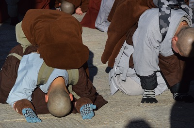 “踏上大智路,一心礼文殊。一礼一智慧,业障自消除。”怀揣着美好的菩提愿,大家踏上了光明的朝圣之路。有的一步一拜,有的三步一拜,有的十步一拜……经过了四个多小时的努力,朝圣队伍终于到达了五方文殊的座下。用汗水得来的法喜,洋溢在大家的脸庞。 在共修文殊法后,个个发起文殊菩萨十种大愿,共祈世界和平、灾难消除、国泰民安、正法久住! |