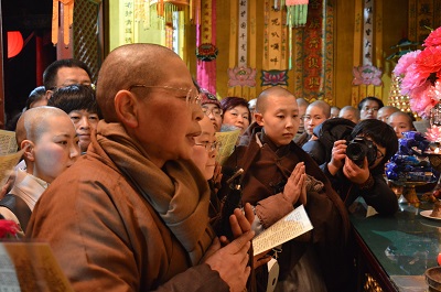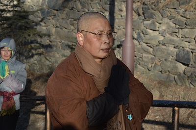 这也成为了普寿寺的一个行门,就是行持,行持的一个法门。实际拜黛螺也不是一件很容易的事情,为什么呢?初一的天气不可预测的,不是说年年都是风和日丽的。因此,我们每一个人在自己所选修的任何一个法门上,如果肯坚持,然后下定决心:不管天气怎么样,但我的心情一定得变得坚强,得变得慈悲,得变得智慧!实际,一切困难都是可以克服的。”