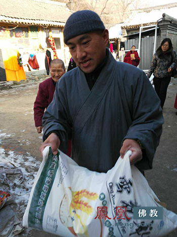 他们的活动得到了全山许多僧众的大力支持,2月24日,40多岁,在东庄租房散住修行、一直热心帮助特困老年僧众生活的比丘尼存仁法师,主动联系志工队,带他们走访在护银沟村租小房居住的智圆老法师。存仁法师认识她,知道她生活很困难。