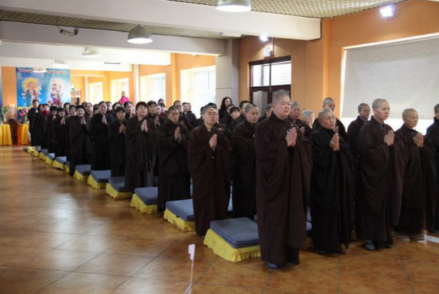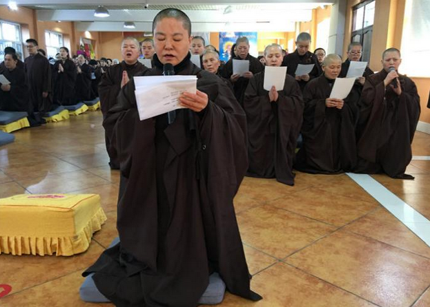 僧人学员代表亲圣师父领众发愿,两序大众长跪佛前,对十方诸佛菩萨发宏誓愿:生生世世,修行佛法,依教奉行,尊师重道,精进修行;生生世世,宁舍生命,不舍正法;知足少欲,安贫守道……僧众居士热情高昂,信心恳切地发愿,庄严震撼。