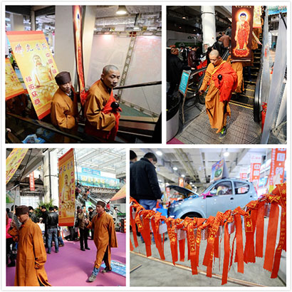 济南春季车展上业务员假冒僧人形象进行商业炒作(图片来源:网络)