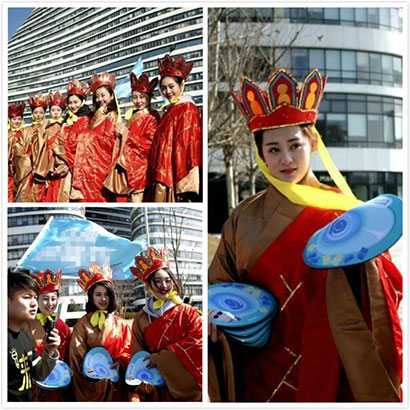 北京望京SOHO楼下惊现“一大群美女唐僧”,为某互联网公司做线下营销。(图片来源:资料图)